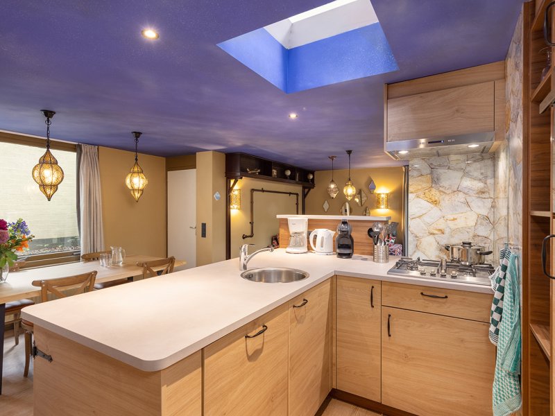 מטבח מאובזר: קומקום, כיריים, מצנם, מיקרוגל קומבי, NESCAFÉ Dolce Gusto, מכונת קפה פילטר, מסחטת הדרים, מדיח כלים, מקרר.