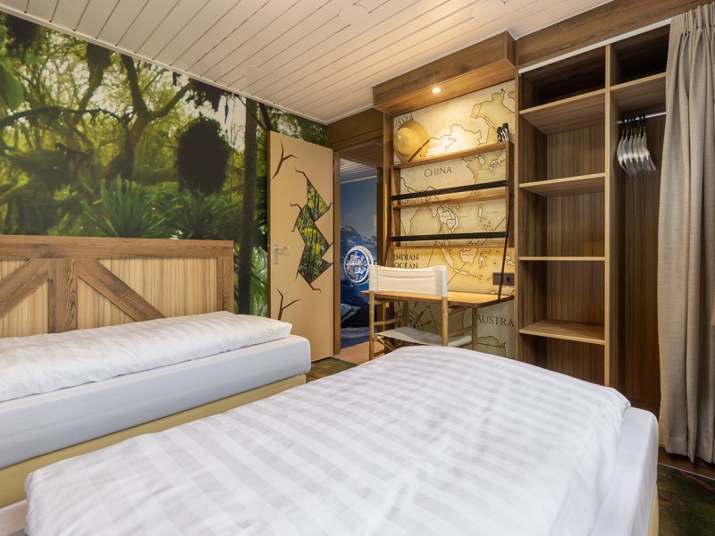 בקוטג' ההרפתקאות שלנו תוכלו לקפוץ לסביבה של מחנה קמפינג! דמיינו שאתם במדבר מתחת לחופת השמים והכוכבים אבל אתם בעצם באמצע הסלון! לאחר מכן חקרו את הג'ונג'ל דרך חדרי השינה והכי חשוב! אל תשכחו את העולם התת ימי בחדר הרחצה.