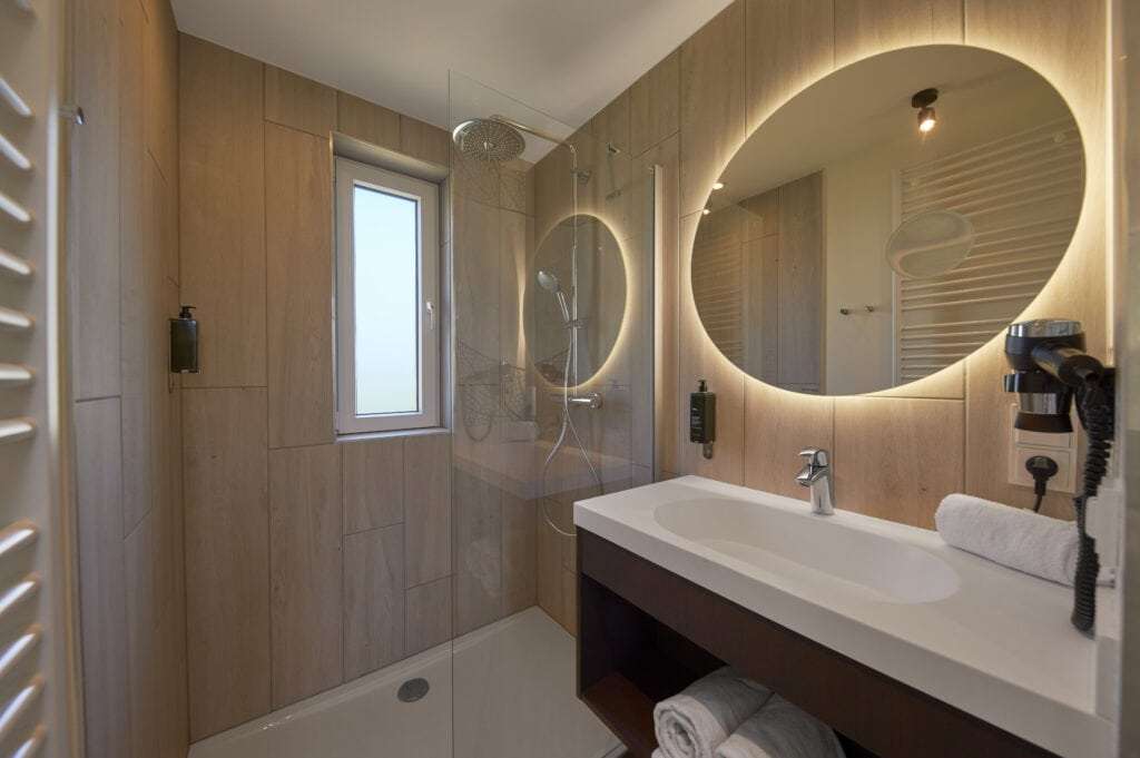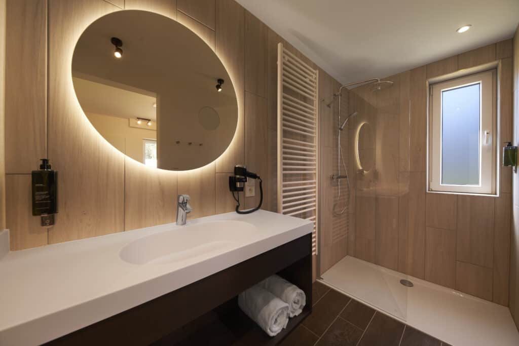חדר רחצה צמוד לכל חדר שינה. חדר רחצה אחד עם כיור ומקלחון גשם, חדר רחצה אחד עם כיור ומקלחון, שירותים נפרדים.