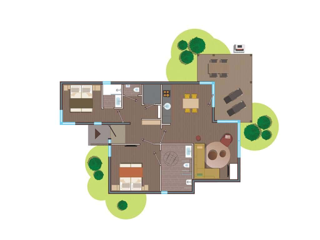 מבודד, מרווח ומעוצב בטוב טעם: איזה מקום נפלא להירגע בו! לכל חדר שינה חדר רחצה משלו לפרטיות מיטבית. עם ההגעה המגבות שלך יהיו מוכנות עבורך והמיטות שלך יהיו מוצעות. רוצים לגלוש עם רשת אלחוטית Wi-Fi חזקה ? כמובן. אבל אנחנו בטוחים שאתם תשכחו מהאינטרנט כשאתם עסוקים בברביקיו ליד המים, או נרגעים על המרפסת הפרטית שלכם.