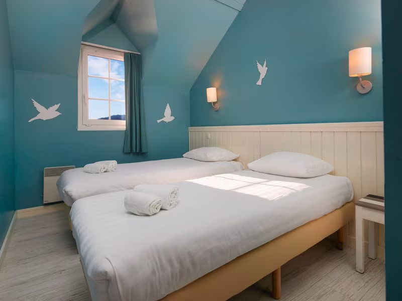 2 חדרי שינה: אחד עם מיטת TWIN (80 על 200 ס״מ) וחדר שינה נוסף עם מיטה זוגית ( 160 על 200 ס״מ).