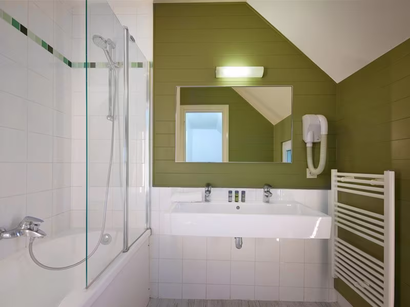 חדר רחצה עם אמבטית בועות, כיור שירותים ומייבש שיער.
