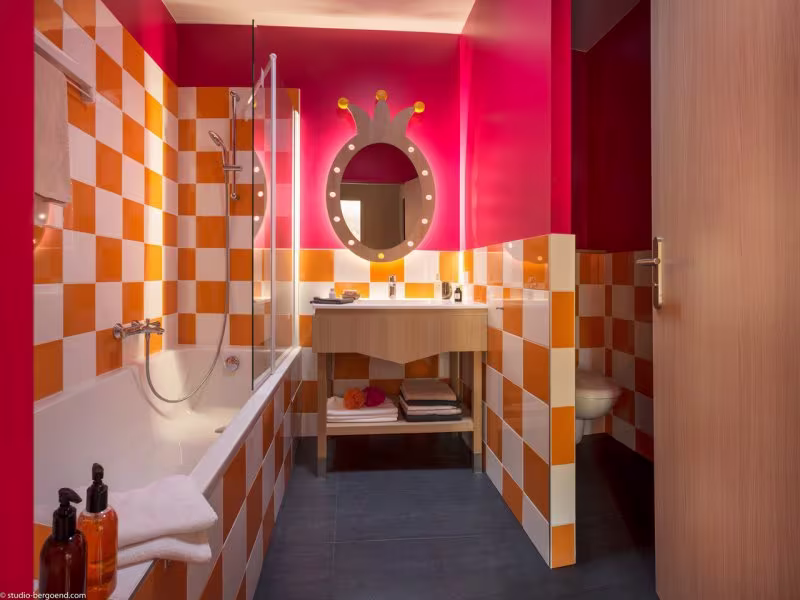 חדר רחצה עם אמבט ושירותים.