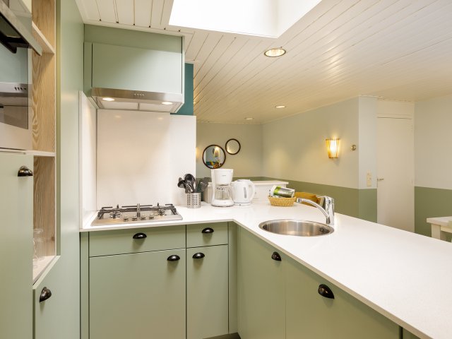 מטבח מאובזר: מדיח כלים, מקרר, מיקרוגל קומבי (עם פונקציית תנור), NESCAFÉ Dolce Gusto, מכונת קפה פילטר, מצנם, מסחטת מיצים, כיריים.