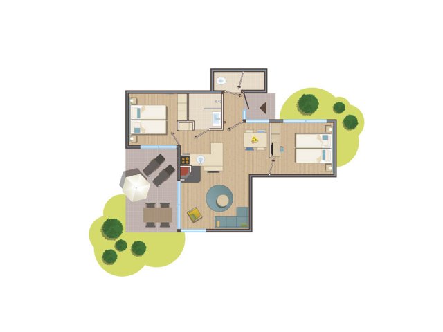 2 חדרי שינה: חדר שינה אחד עם 2 מיטות יחיד ומסך טלוויזיה שטוח. חדר שינה נוסף עם 2 מיטות יחיד. שמיכות פוך וכריות.