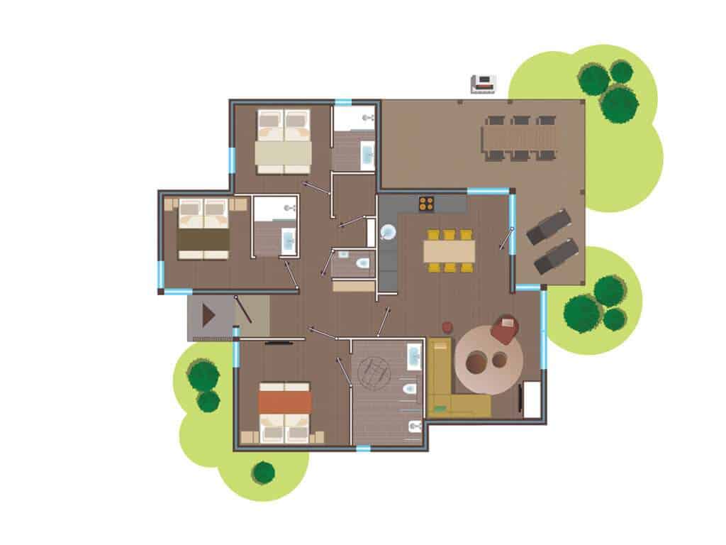 מבודד, מרווח ומעוצב בטוב טעם: איזה מקום נפלא להירגע בו! לכל חדר שינה חדר רחצה משלו לפרטיות מיטבית. עם ההגעה המגבות שלך יהיו מוכנות עבורך והמיטות שלך יהיו מוצעות. רוצים לגלוש עם רשת אלחוטית Wi-Fi חזקה ? כמובן. אבל אנחנו בטוחים שאתם תשכחו מהאינטרנט כשאתם עסוקים בברביקיו ליד המים או נרגעים על המרפסת הפרטית שלכם.