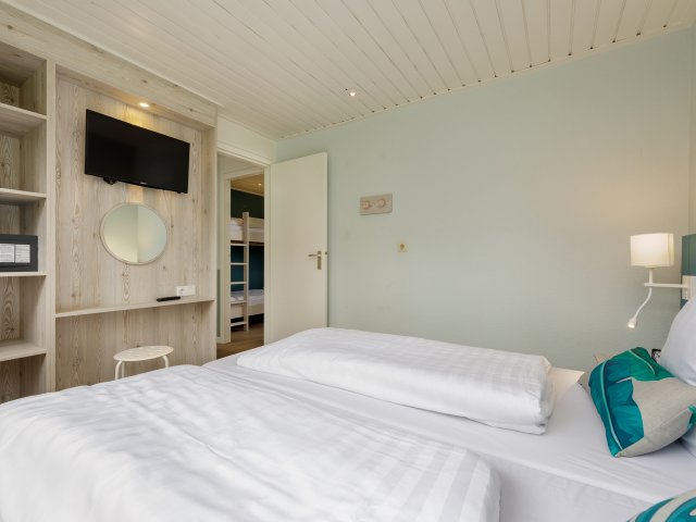 3 חדרי שינה: חדר שינה אחד עם 2 מיטות יחיד ומסך טלוויזיה שטוח, חדר שינה שני עם 2 מיטות יחיד, חדר שינה שלישי עם מיטת קומותיים (המיטה העליונה אינה מתאימה לילדים מתחת לגיל 6).