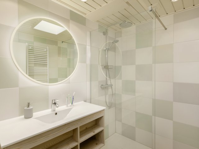 חדר רחצה אחד עם מקלחת. שירותים נפרדים.