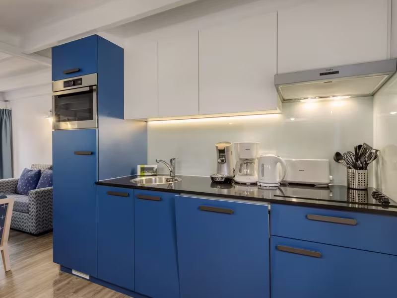 מטבח מאובזר באופן מלא, עם כיריים, מקרר, מיקרוגל משולב, מכונת קפה פילטר, מכונת קפה NESCAFÉ Dolce Gusto, קומקום חשמלי, טוסטר, מדיח כלים, כלי אוכל, סכו"ם, סירים ומחבתות.
