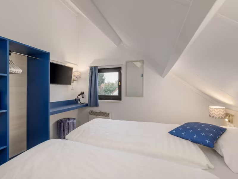 ארבעה חדרי שינה. ארבעה חדרי שינה עם שתי מיטות יחיד צמודות, חדר שינה אחד עם וטלוויזיה נוספת בחדר.