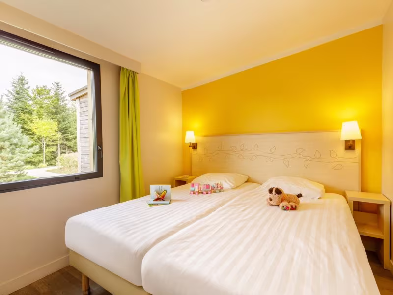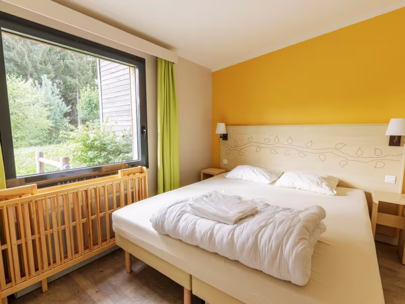 4 חדרי שינה: 2 עם מיטה זוגית (180 על 210 ס"מ), 2 עם מיטות נפרדות (90 על 200 ס"מ).