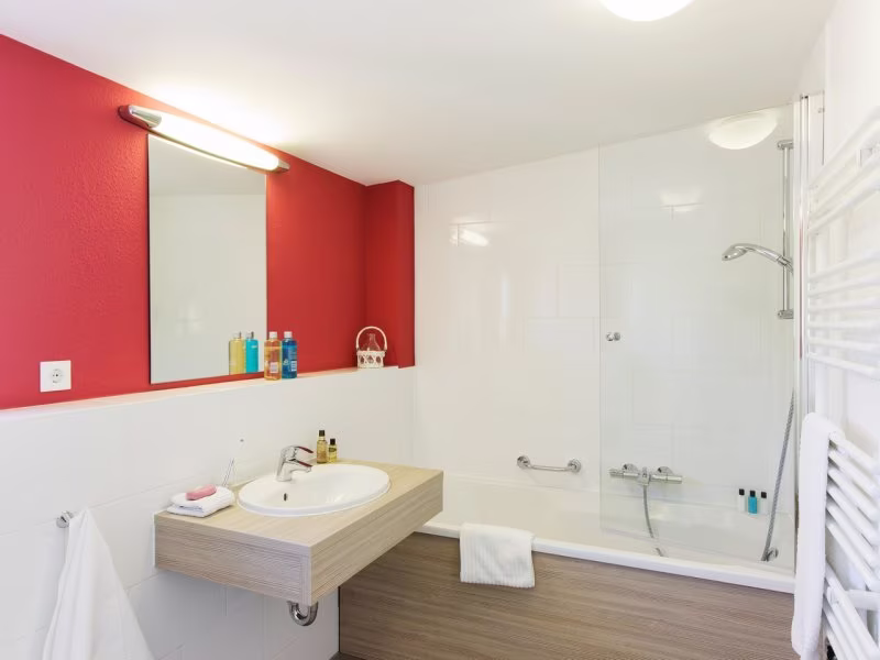 2 חדרי רחצה: חדר רחצה אחד עם אמבט בקומה העליונה וחדר רחצה נוסף עם שירותים ומקלחת בקומה התחתונה. ישנם שירותים נפרדים.