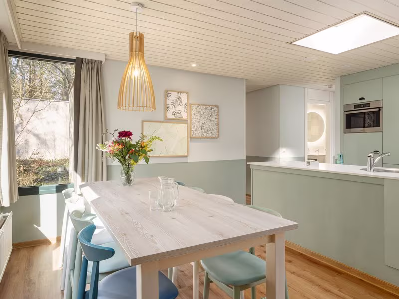 מטבח מאובזר: כיריים, מקרר, מדיח כלים, מיקרוגל קומבי, NESCAFE DOLCE GUSTO, מכונת קפה פילטר, טוסטר, מסחטת מיץ, קומקום, סכום, סירים, מחבתות, וכיסא גבוה.